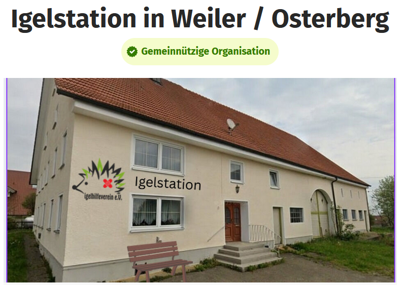 Jetzt Spenden für „Tierarztkosten für verletzte Igel“ bei unserem Partner betterplace.org